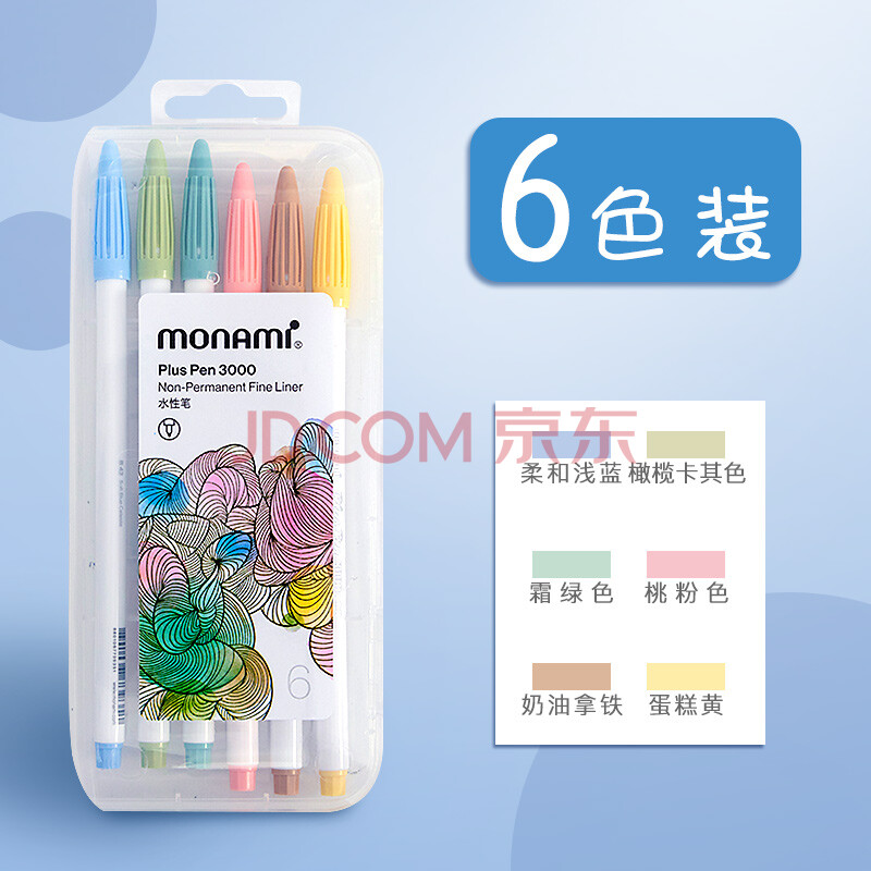 商品相册:慕那美(monami)新P3000纤维笔水性笔彩色中性笔套装水彩笔勾线笔手帐笔柔和6色04009Z06-S水彩笔第