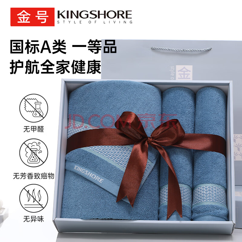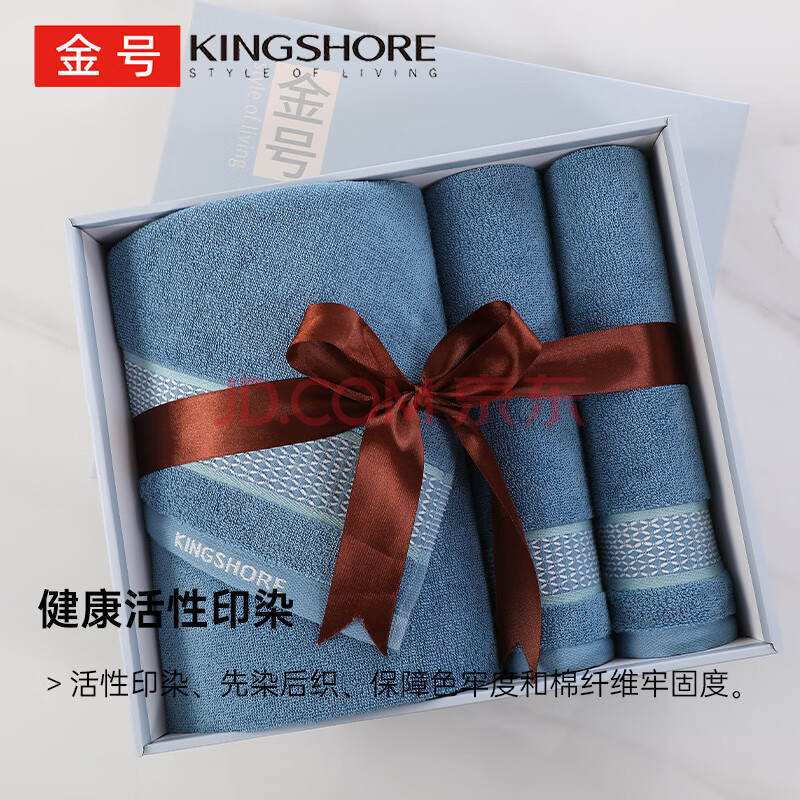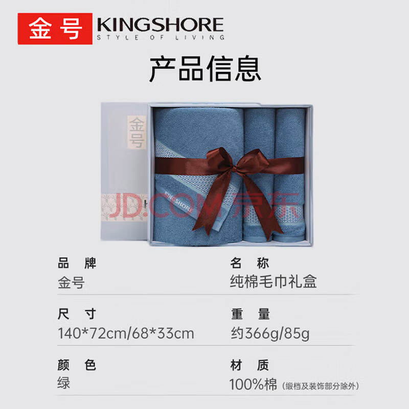 商品相册:金号毛巾礼盒 A类纯棉毛巾浴巾三件套 节日员工福利礼盒 绿第