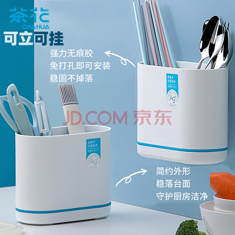 商品相册:茶花抗菌筷笼 筷子筒沥水创意厨房置物架 家用筷筒多功能厨房收纳盒第
