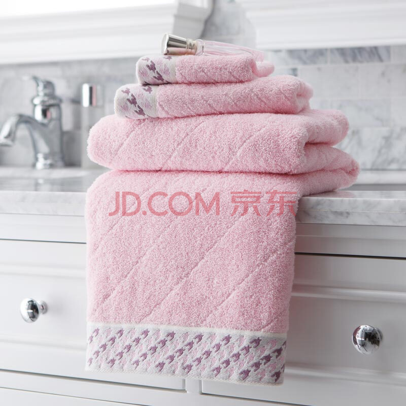 商品相册:洁丽雅(Grace)纯棉提花千鸟格加厚吸水毛巾浴巾礼盒三件套 红色第