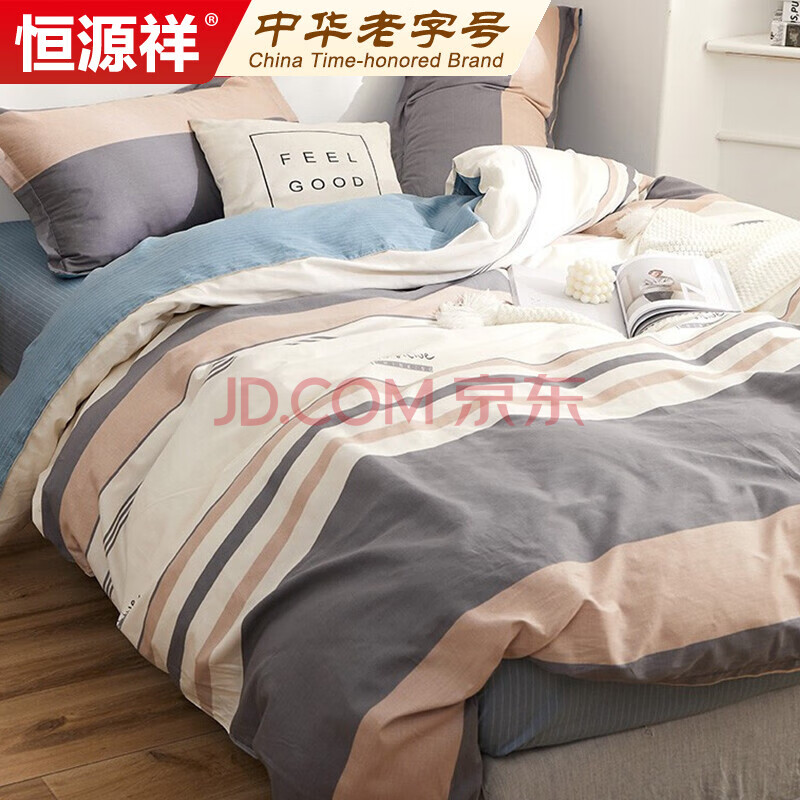 商品相册:恒源祥悦柔亲肤水洗四件套磨毛床上套件1.5/1.8米床单被套200*230cm条纹第