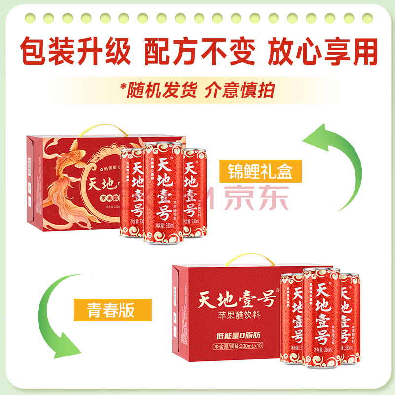 商品相册:天地壹号 苹果醋饮料330ml*15青春版整箱 低糖0脂年货礼盒 多喝醋有好处 第
