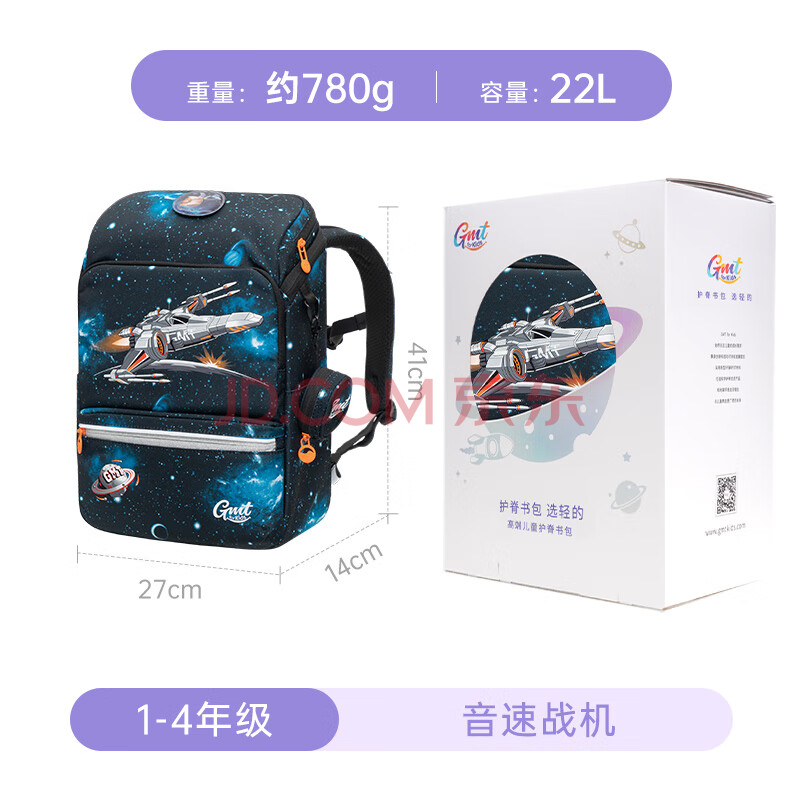 商品相册:Gmt for kids儿童书包小学生轻便护脊减负双肩包大容量礼物1-4年级男音速战机第