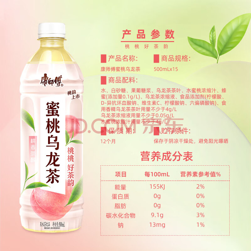 商品相册:康师傅 蜜桃乌龙茶500ml*15瓶 水果味茶饮料 饮品 量贩装整箱 热门商品第