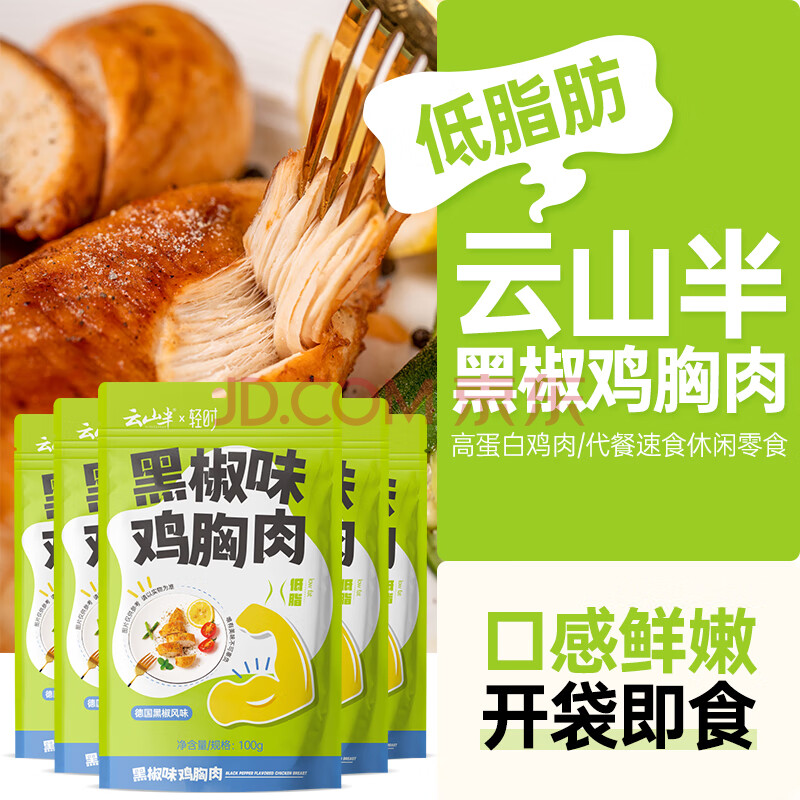 商品相册:云山半即食鸡胸肉黑椒味100g*5袋 袋装 低脂肪高蛋白健身代餐休闲零食第1张/共8