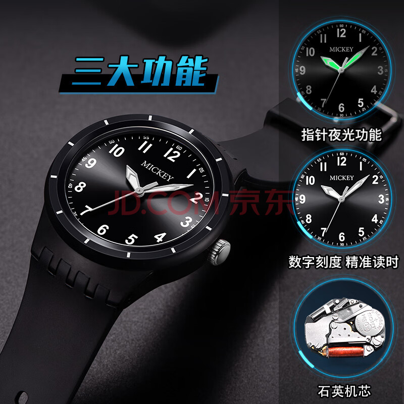 商品相册:迪士尼(Disney)学生手表男孩简约防水青少年石英表初中小学生考试手表开学礼物第