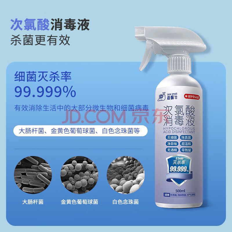 商品相册:海蜗牛次氯酸喷雾500ml免洗手消毒液家用婴儿童宠物甲流诺如手足口第