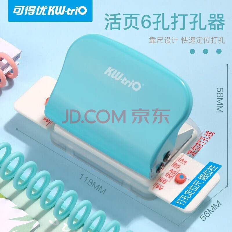 商品相册:可得优(KW-triO)多孔活页打孔机 学生装订活页本 六孔打孔器 颜色随机 99H9第