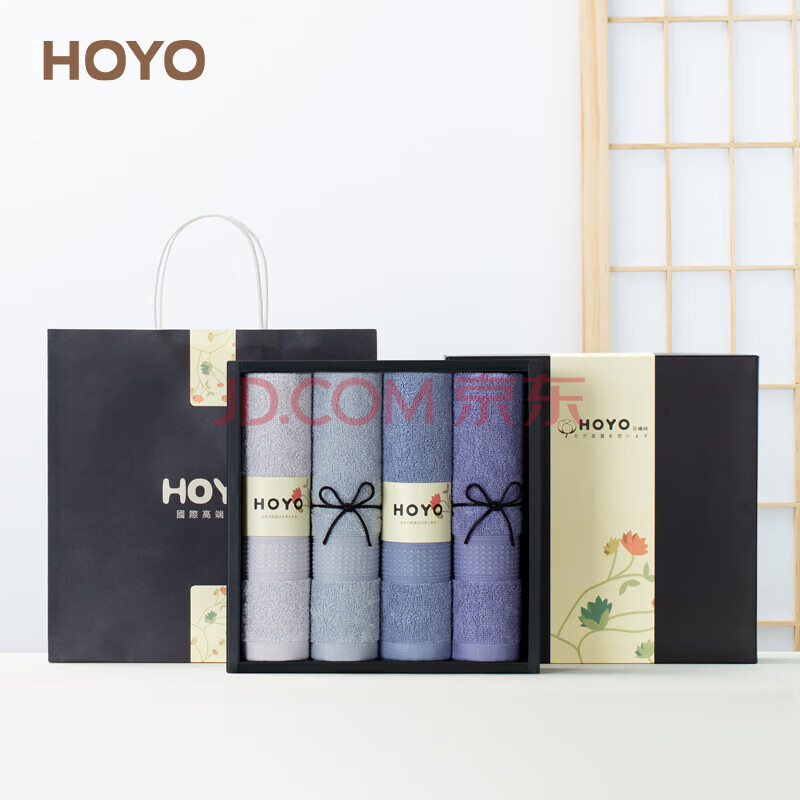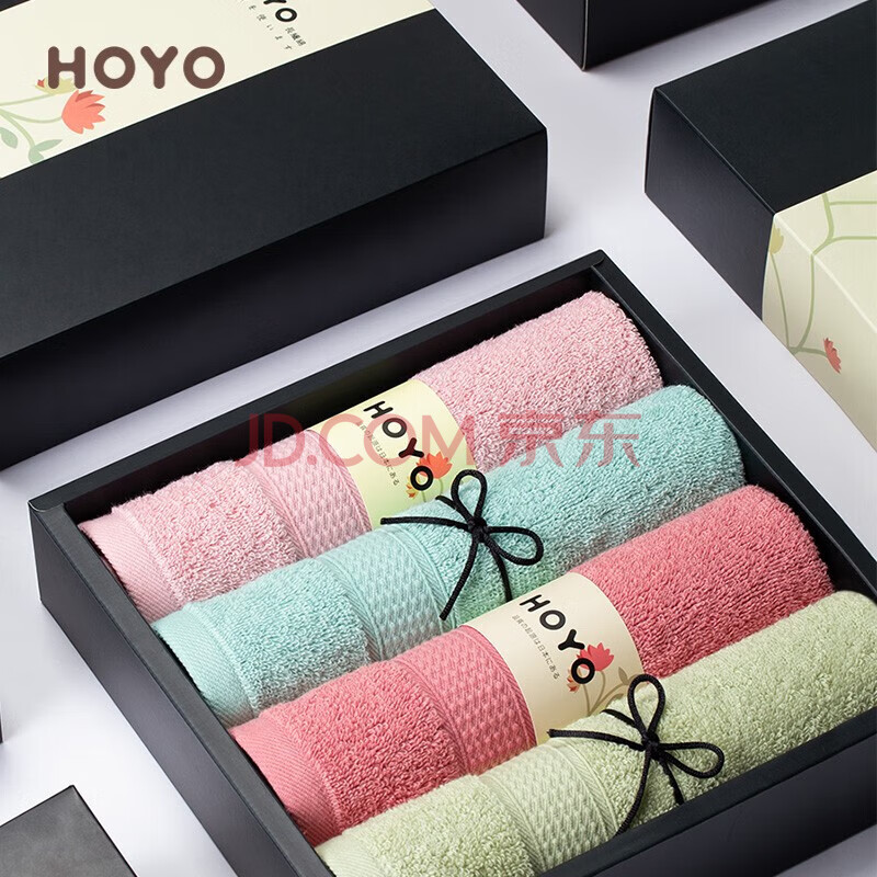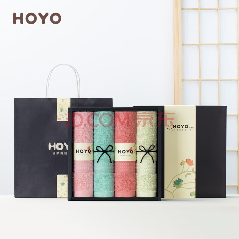 商品相册:HOYO日本毛巾礼盒 A类纯棉荷花毛巾4条装柔软吸水家用公司团购定制第