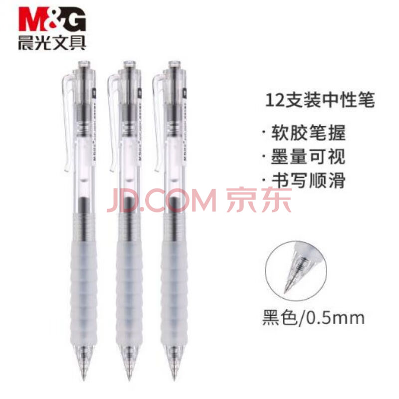 商品相册:晨光(M&G)文具AGPJ0601/0.5mm作业神器按动中性笔舒适感握感水笔刷题笔学生用速干笔 黑色 12支/盒 1盒装第