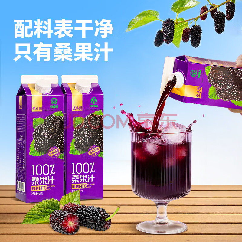 商品相册:宝桑园100%桑果汁946ml*1盒 NFC桑葚汁 聚会分享装 绿色食品第