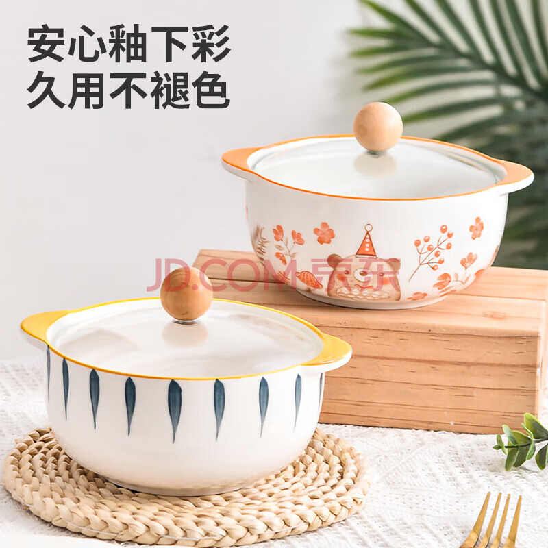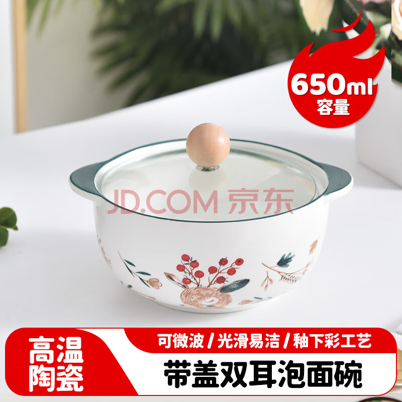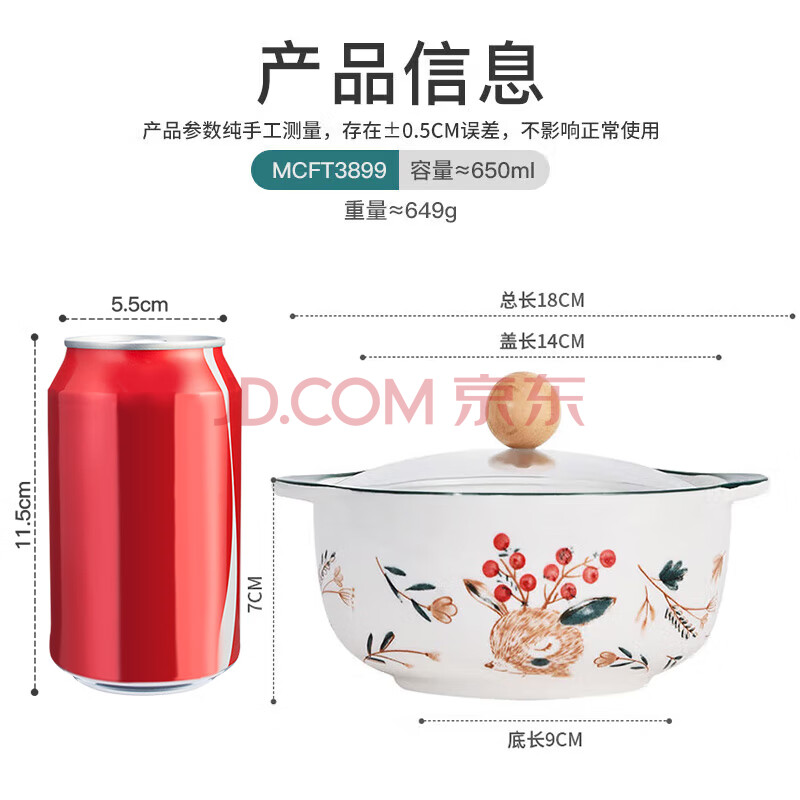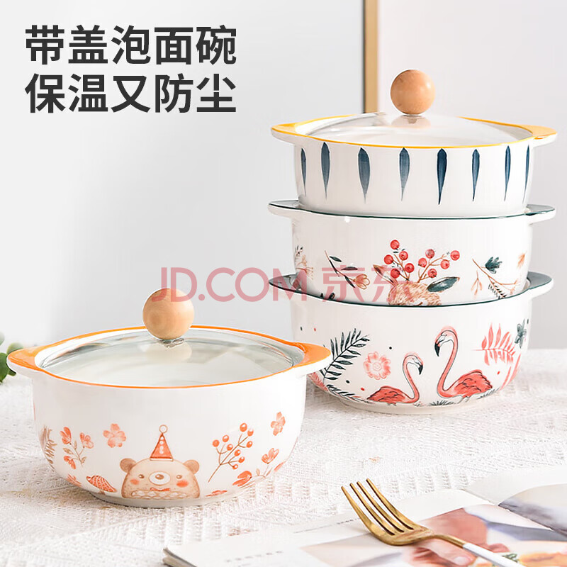 商品相册:美厨(MAXCOOK)陶瓷碗泡面碗 陶瓷碗日式碗家用汤碗面碗饭碗 带盖 MCFT3899第