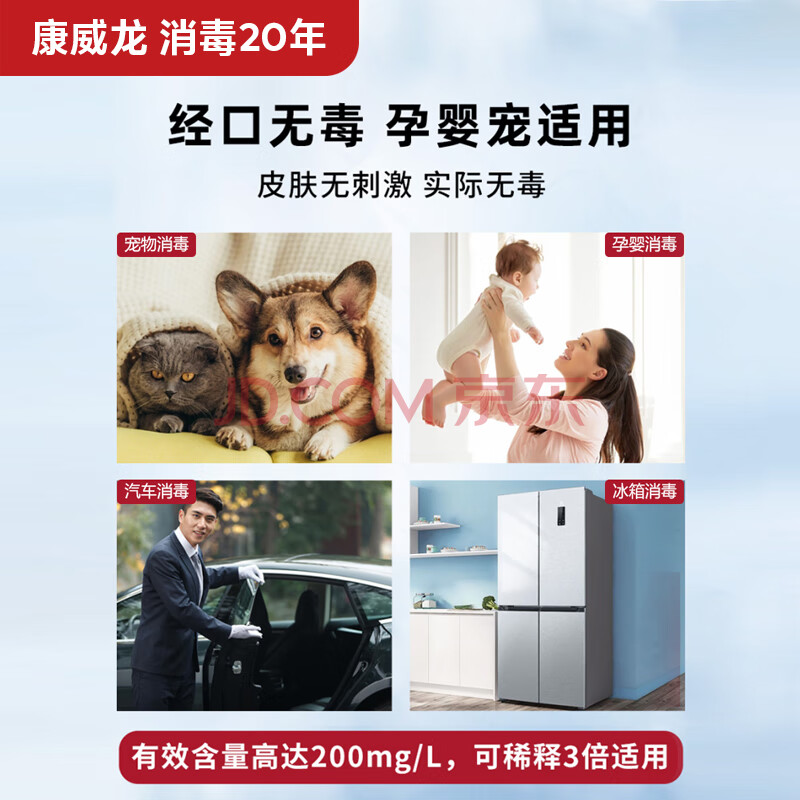 商品相册:康威龙次氯酸消毒液5L 消字号认证含氯消毒喷雾用途家居衣物皮肤甲流感第