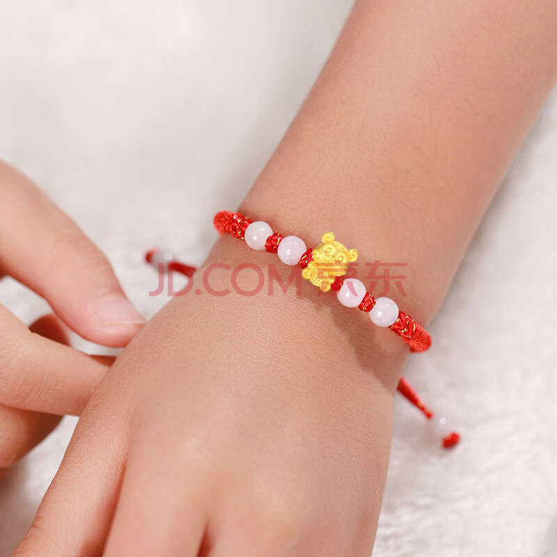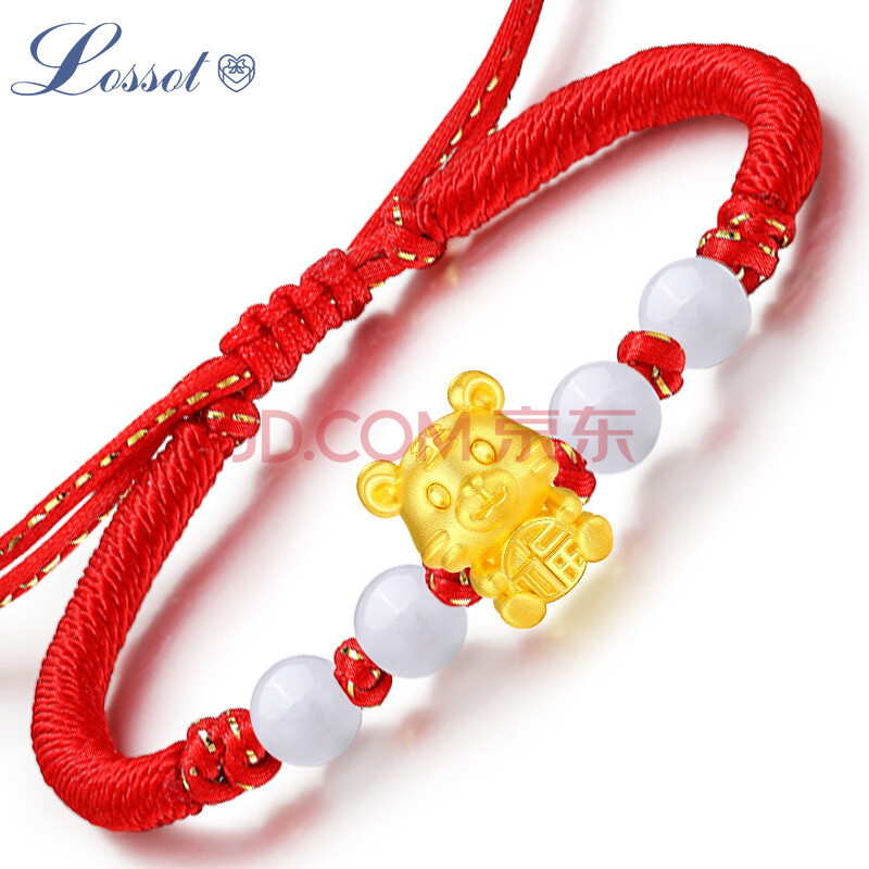 商品相册:Lossot生日礼物足金福虎黄金转运珠手链虎年生肖红绳本命年手链3D金虎第