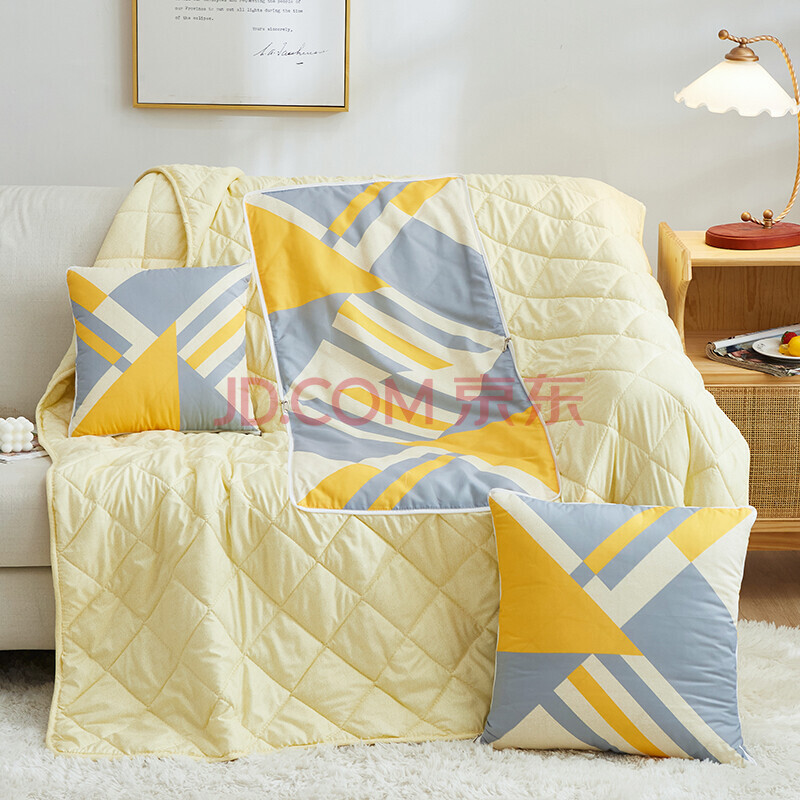 商品相册:洁丽雅抱枕被四季两用办公室午睡毯子二合一枕头 几何三角 50*50cm第1张/共7
