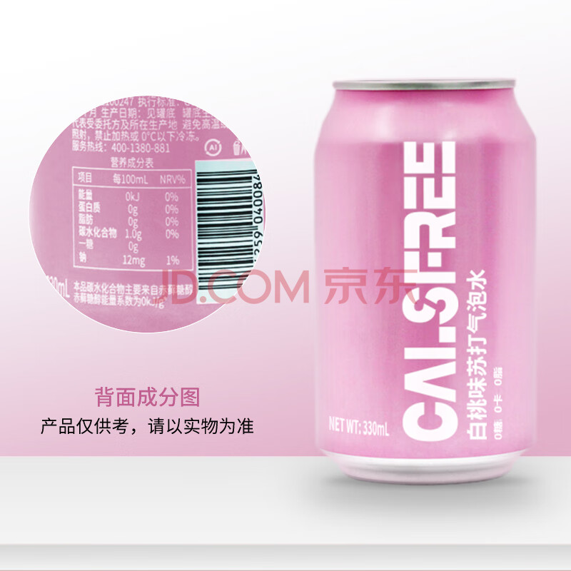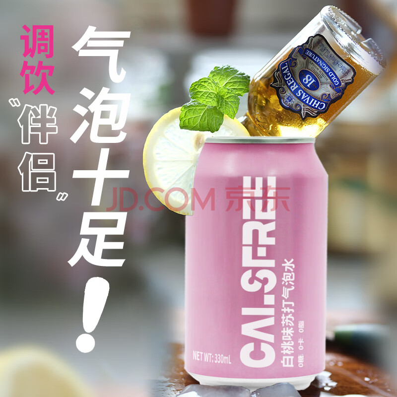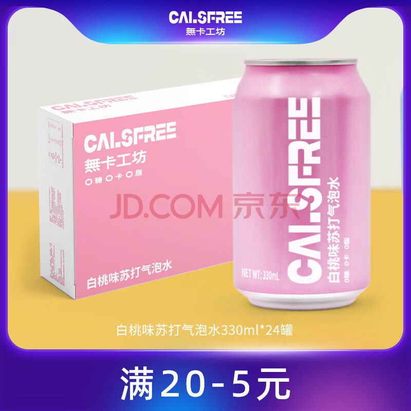 商品相册:无卡工坊(CALSFREE)白桃味苏打气泡水0糖0脂0卡汽水330mL*24罐无糖饮料整箱第