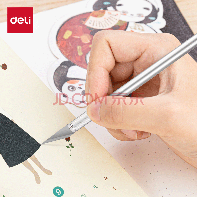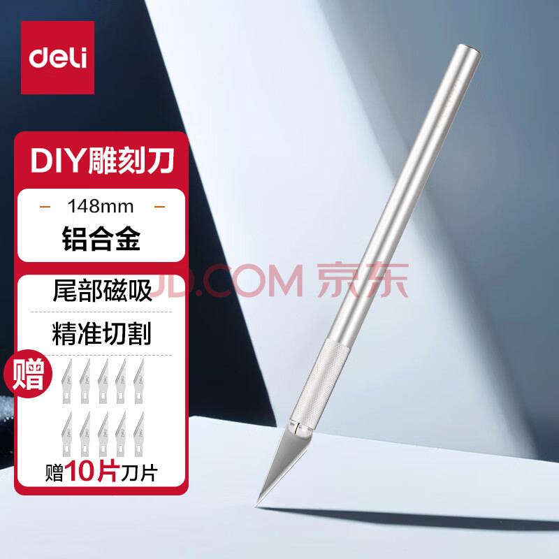 商品相册:得力(deli)DIY刻纸雕刻刀美工刀手工剪纸刻刀橡皮章学生文具纸雕模型刀具雕花笔刀148mm 银色2102第