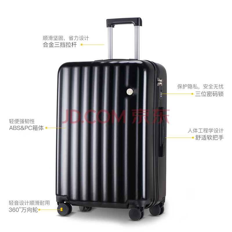 商品相册:ELLE法国行李箱26英寸黑色时尚轻奢女士拉杆箱小清新高颜值轻便旅行箱第