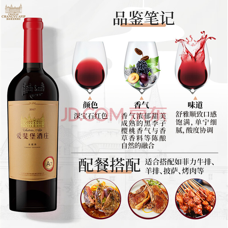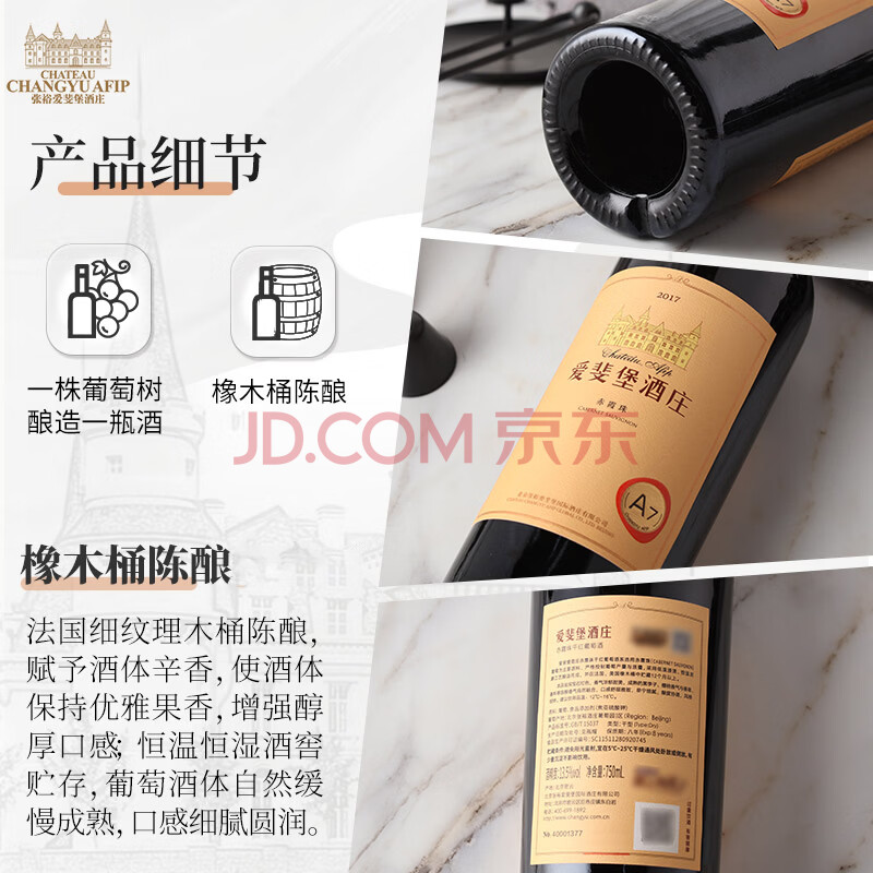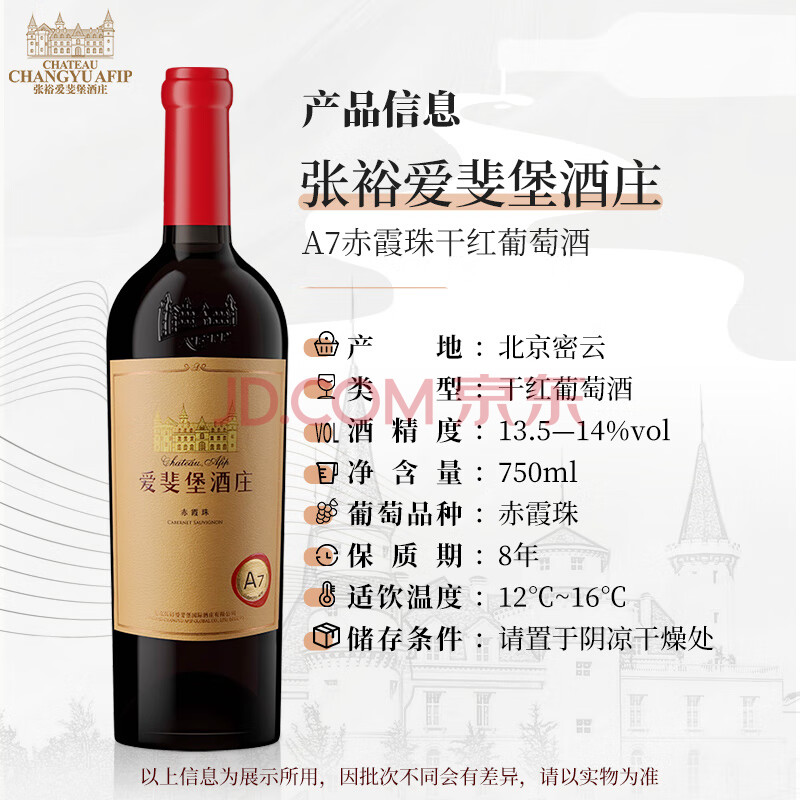 商品相册:张裕(CHANGYU)爱斐堡(A7)赤霞珠干红葡萄酒 750ml单支木盒装第