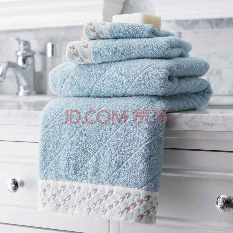 商品相册:洁丽雅(Grace)纯棉提花千鸟格加厚吸水毛巾浴巾礼盒三件套 兰色第