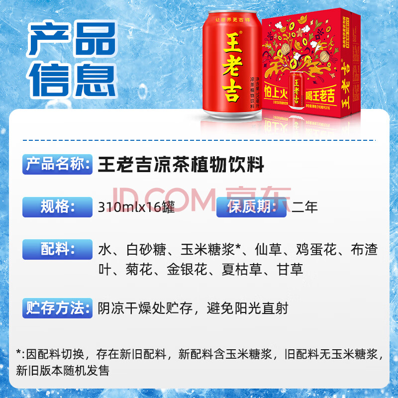 商品相册:王老吉凉茶310ml*16罐 整箱装 天然植物饮料【张凌赫同款】热门商品推荐第