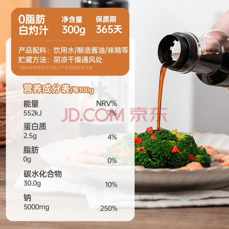 商品相册:云山半0脂肪白灼汁300g 白灼菜心西兰花虾凉拌汁酱油轻食蔬菜沙拉健身餐第1张/共6