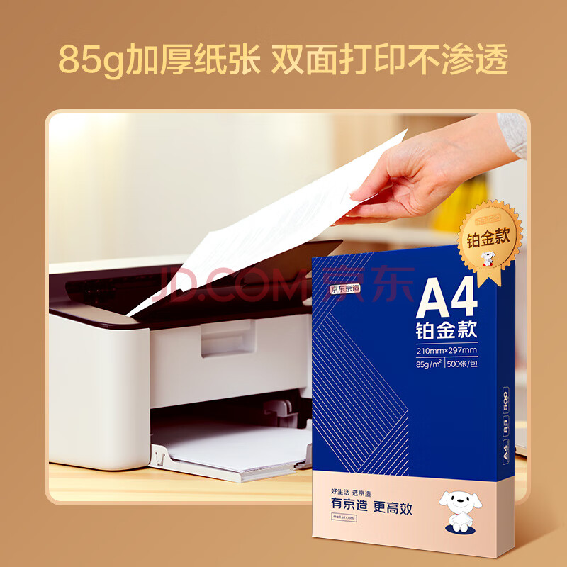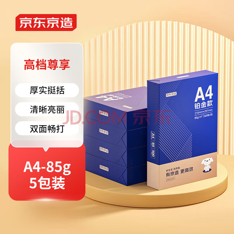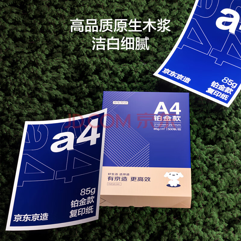 商品相册:京东京造A4打印纸 85g复印纸 铂金系列 双面高档打印复印纸 500张*5包/箱(2500张)【碳中和认证】第