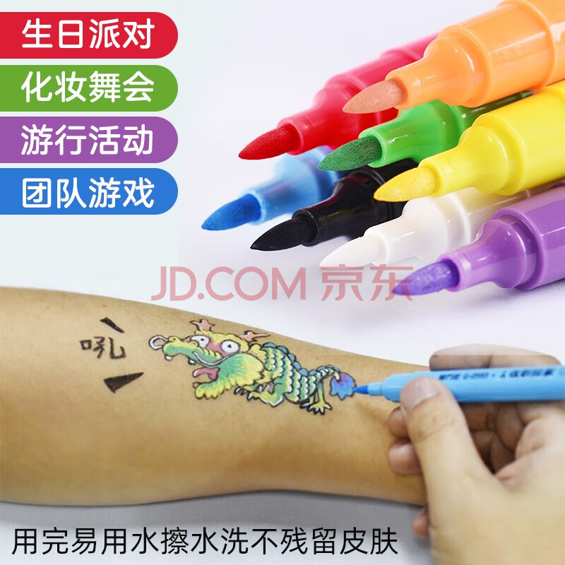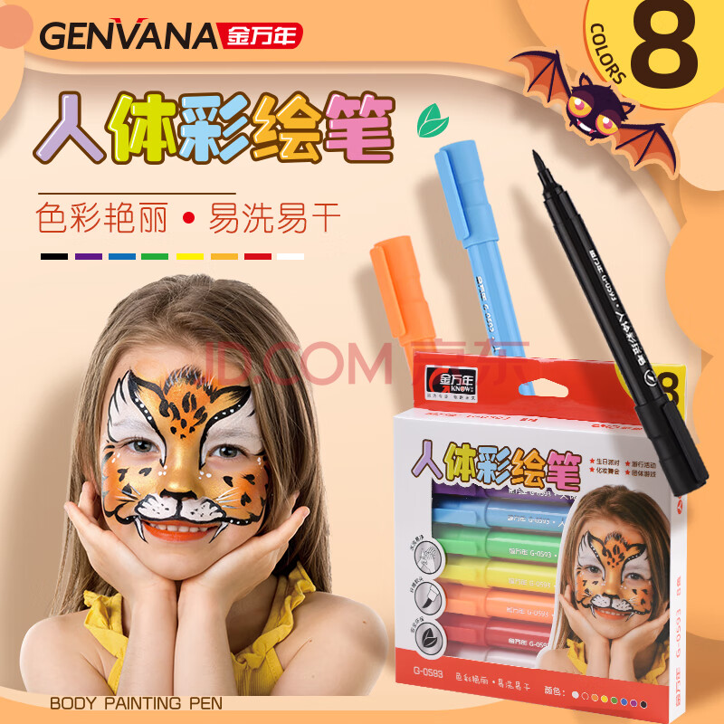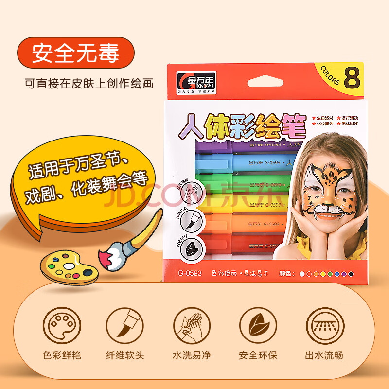 商品相册:金万年人体彩绘笔可水洗身体面部脸部绘画笔儿童节国庆出游礼物儿童化妆彩笔8色G-0593-029第