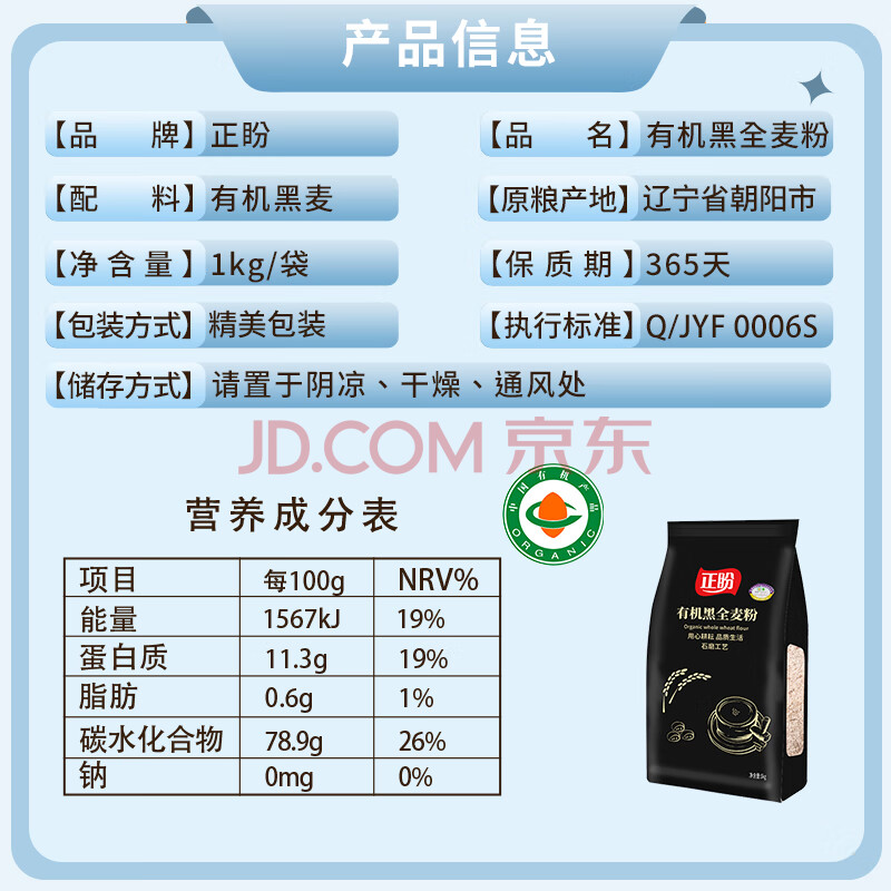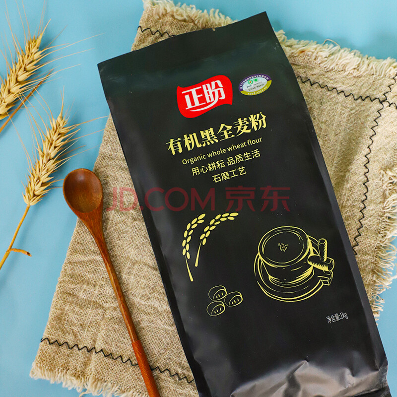 商品相册:正盼 有机黑全麦粉2斤/袋 纯黑全麦面 粗粮杂粮粉 全麦面包原料蒸馒头第