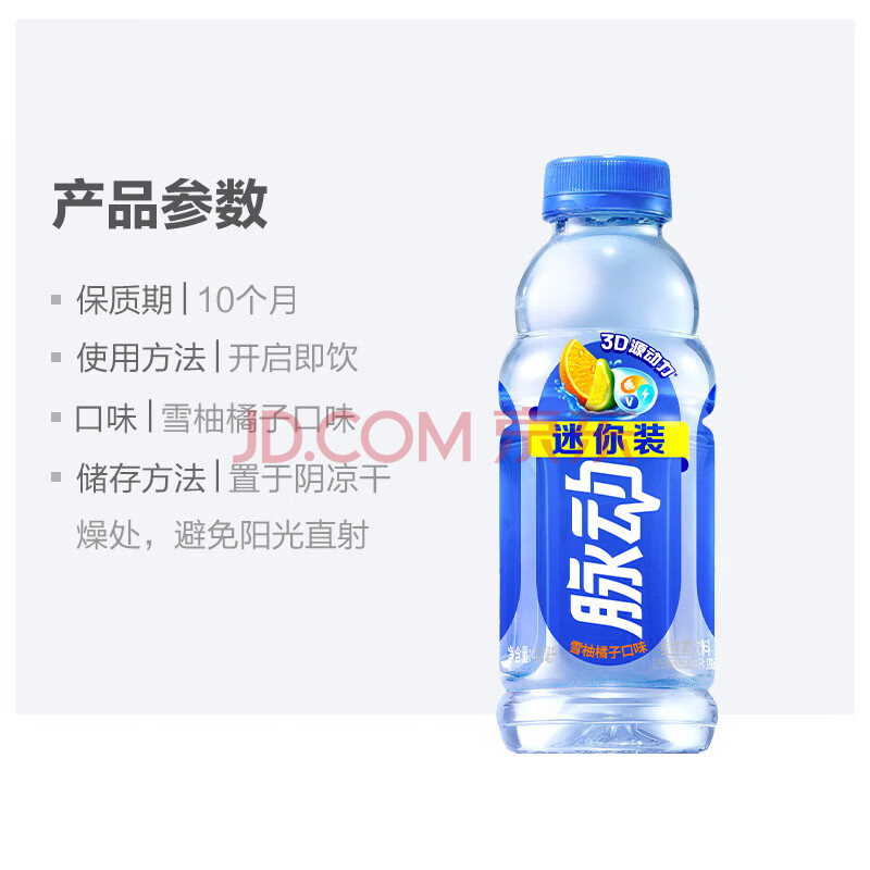 商品相册:脉动雪柚橘子口味400ML*15瓶迷你小瓶低糖电解质水维生素C饮料整箱装第