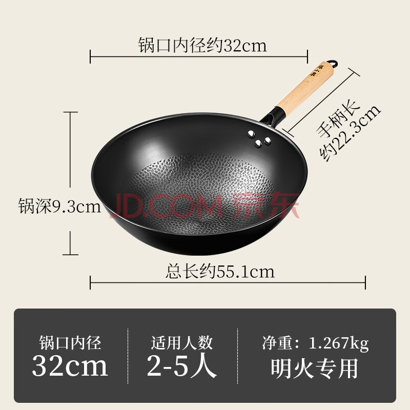 商品相册:张小泉无涂层中华爆炒锅精铁锅捶纹锅底燃气专用款32cm C30820200第