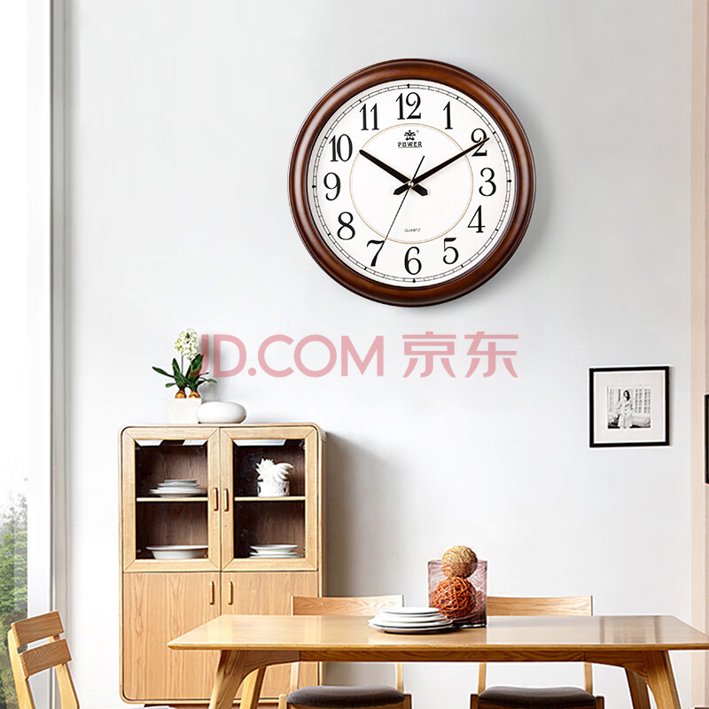 商品相册:POWER霸王实木挂钟 中式简约时钟创意挂墙电子钟客厅38cm 1893DKS1第