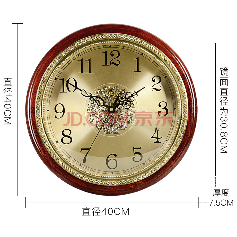 商品相册:汉时(Hense)高档黄铜实木挂钟客厅挂墙时钟轻奢创意石英静音钟表HW38A款40cm第