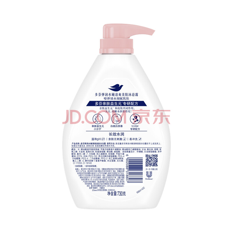 商品相册:多芬弹润水嫩沐浴乳730g 细腻肌肤 持久留香润肤(新老包装随机)第