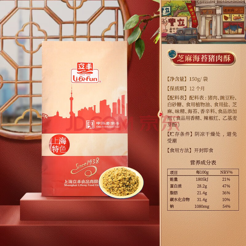 商品相册:立丰(lifefun)芝麻海苔猪肉酥150g袋装中华老字号儿童休闲零食烘培食材寿司肉松第