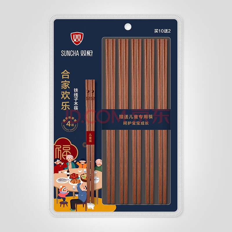商品相册:双枪 原木铁木筷子家用实木筷子10双+2双儿童筷子家庭餐具套装 第