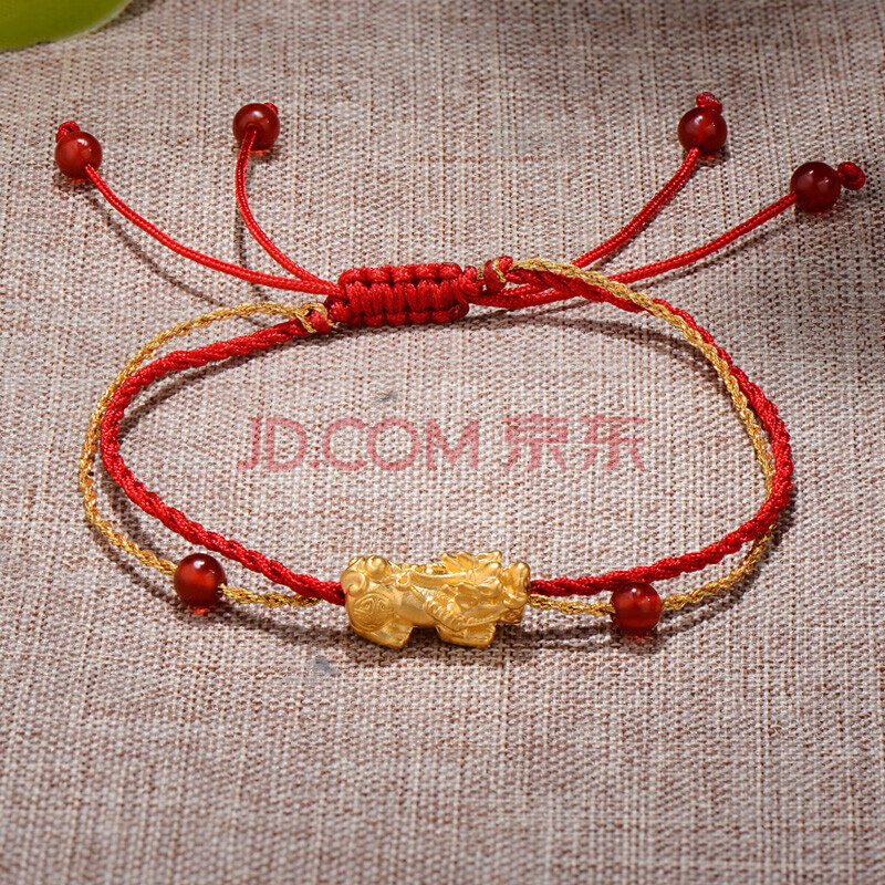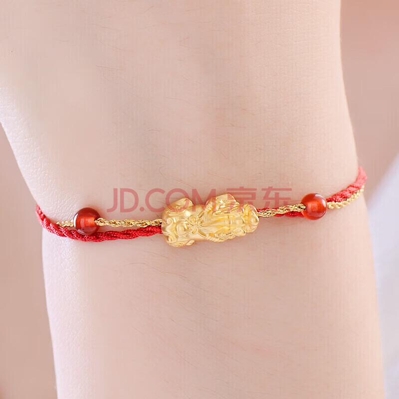 商品相册:蒂蔻(Tico)足金招财貔貅黄金手链男女3D硬金转运珠红玛瑙手串生日礼物第