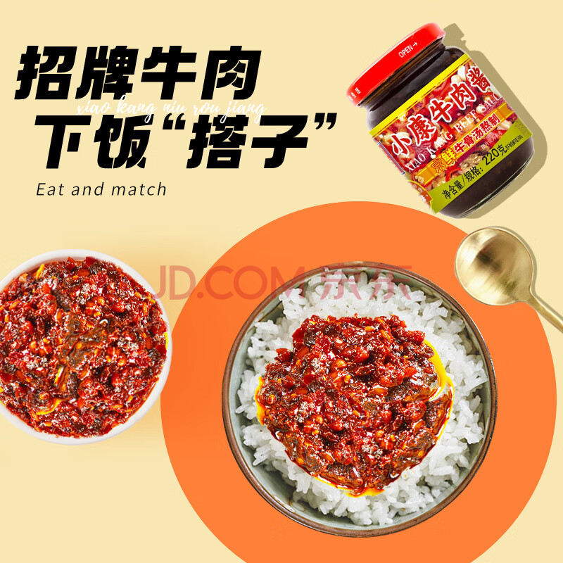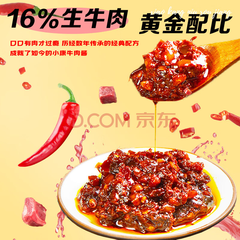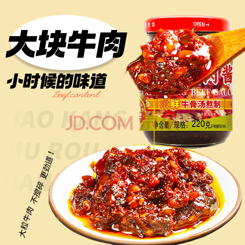 商品相册:小康香辣牛肉酱220g 16%生牛肉含量下饭菜拌面酱火锅调料辣椒酱第