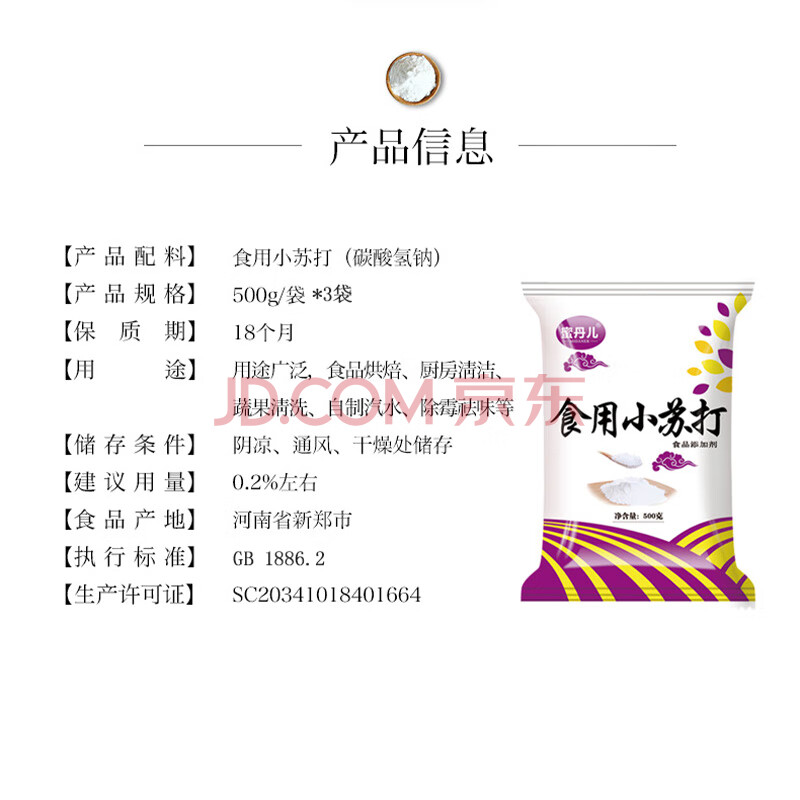 商品相册:蜜丹儿食用小苏打粉1斤*3袋 烘焙原料家用厨房清洗果蔬去污清洁除垢第