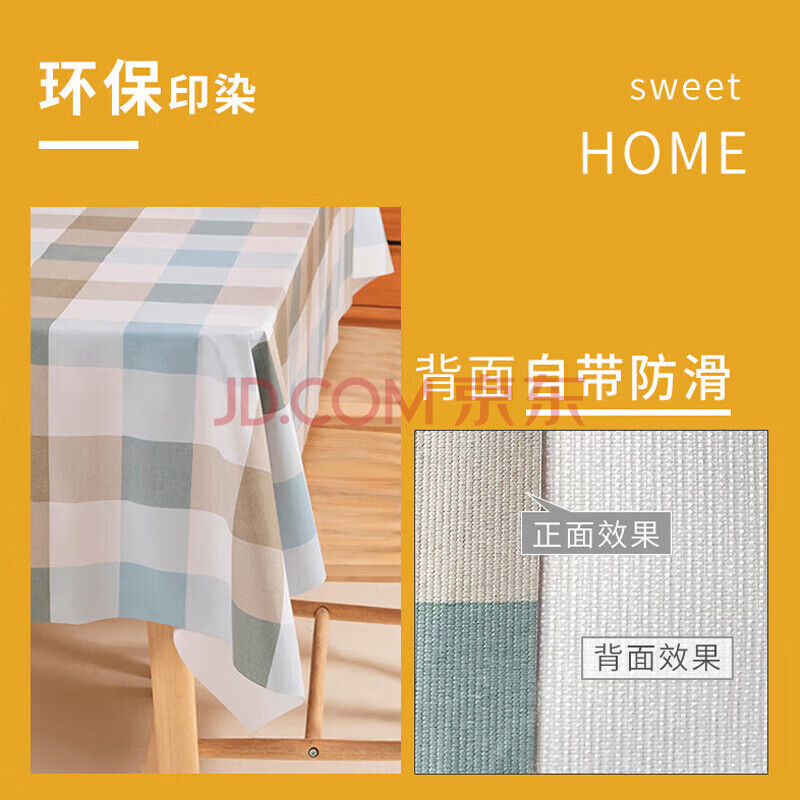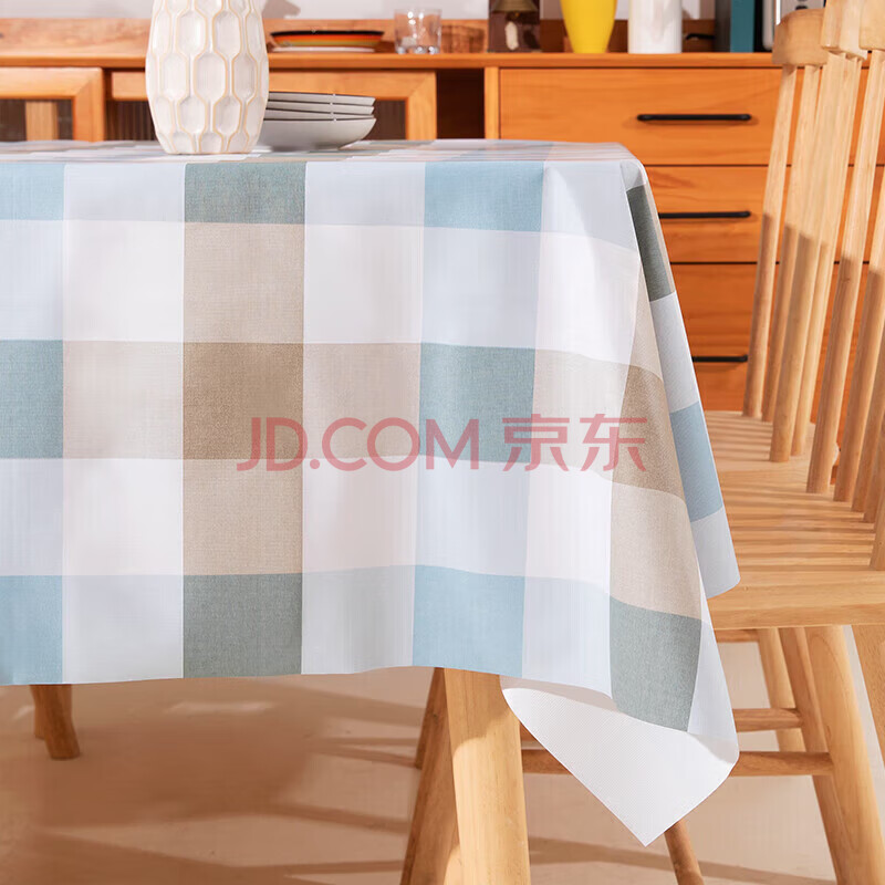 商品相册:钟爱一生桌布防水防油免洗加厚PVC餐桌布茶几宿舍书桌布 蓝咖大格90*137cm第
