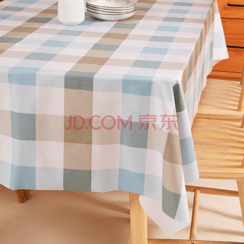 商品相册:钟爱一生桌布防水防油免洗PVC加厚长方形餐桌茶几台布 蓝咖大格137*180cm第