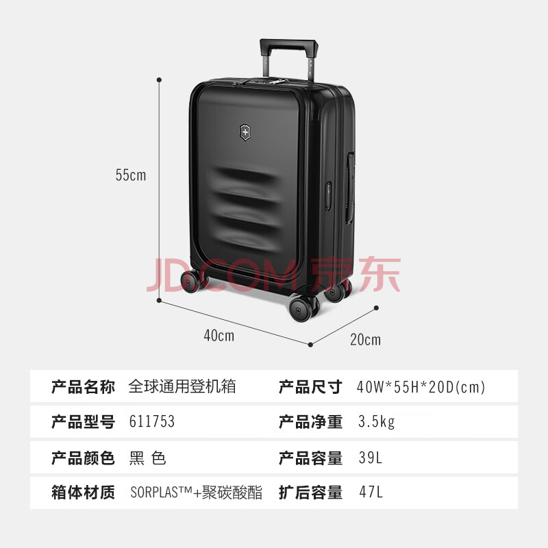 商品相册:维氏瑞士军刀斯派克3.0行李箱20英寸登机箱万向轮旅行箱密码箱611753第