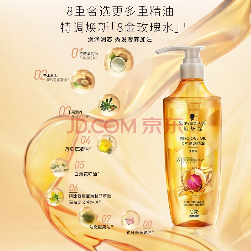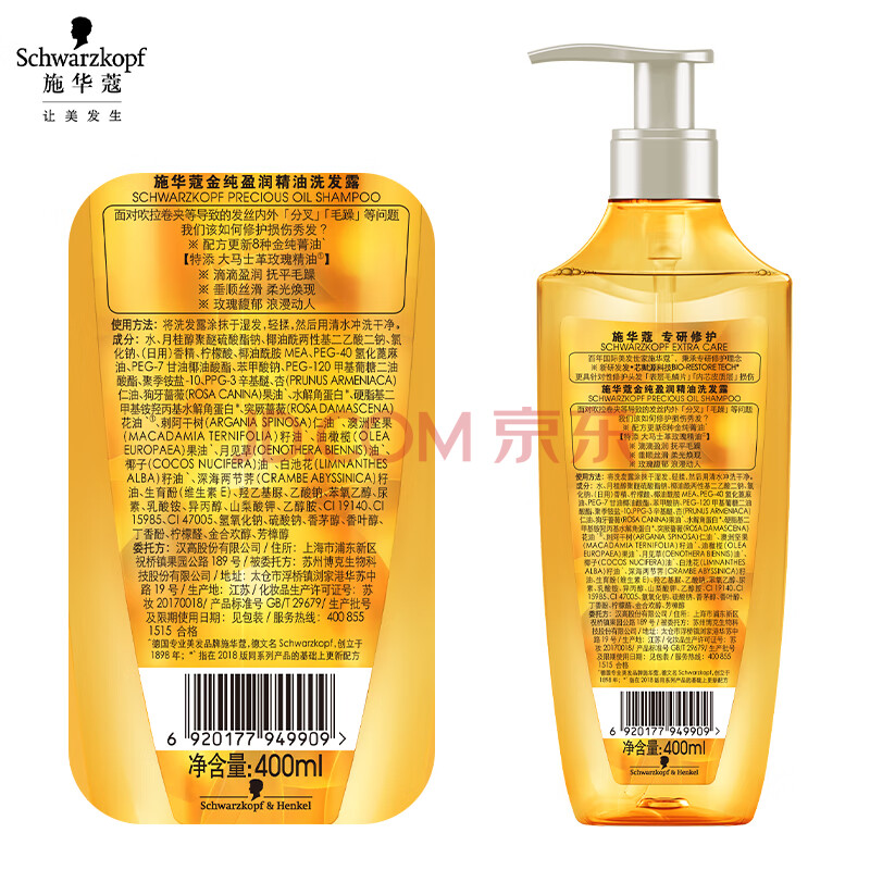 商品相册:施华蔻(Schwarzkopf)金纯盈润精油洗发露400ml 无硅油洗发水 植物精油改善毛躁第