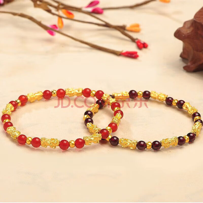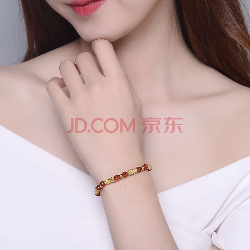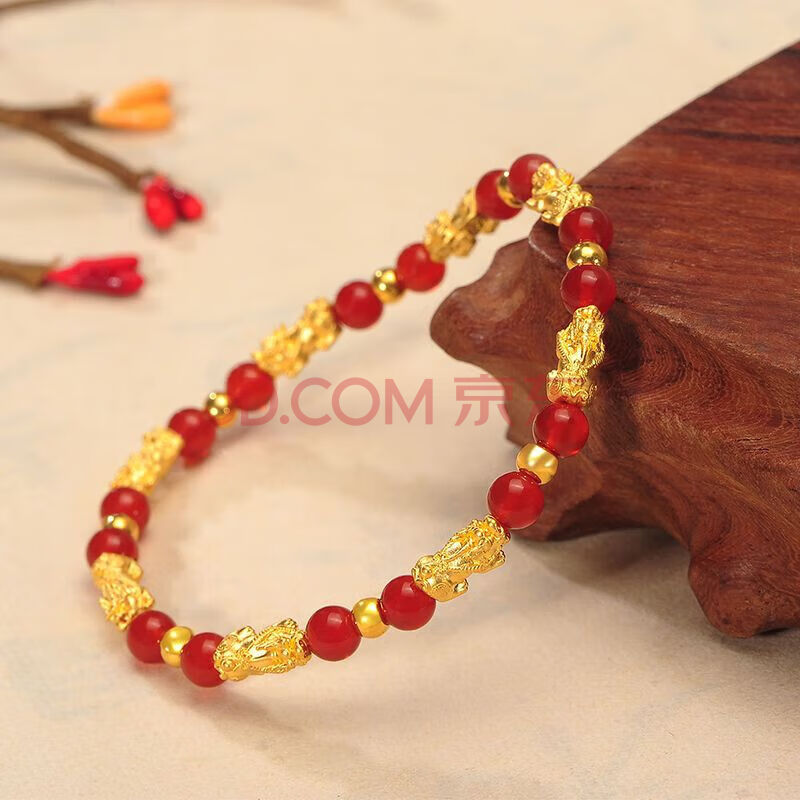 商品相册:蒂蔻(Tico)八方来财足金招财貔貅黄金转运珠手链女3D金红玛瑙手串生日礼物第