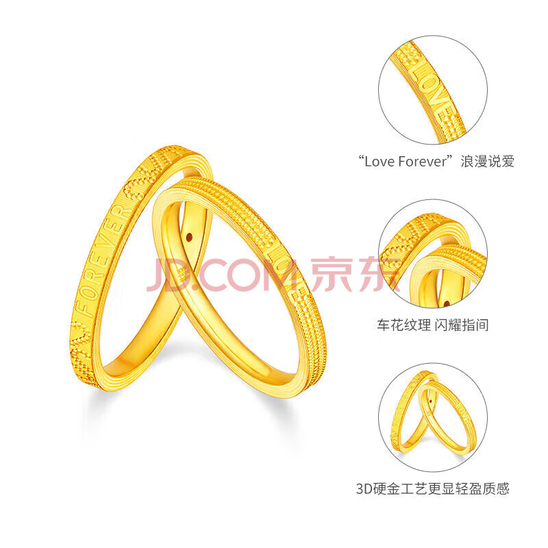 商品相册:梦金园 黄金戒指足金字母love情侣对戒forever婚戒素圈戒指硬金第