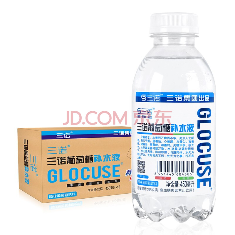 商品相册:三诺原味葡萄糖补水液健身运动能量饮料体考比赛补体力450ml*15瓶整箱第