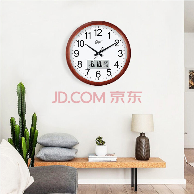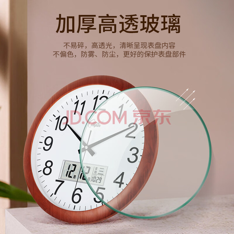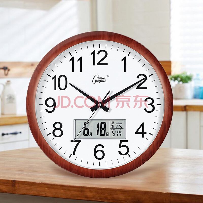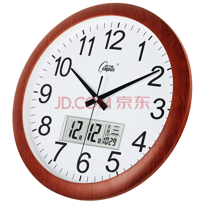 商品相册:康巴丝(Compas)挂钟客厅静音大尺寸石英钟表挂墙钟日历时钟3128Y 木纹日历款38cm第