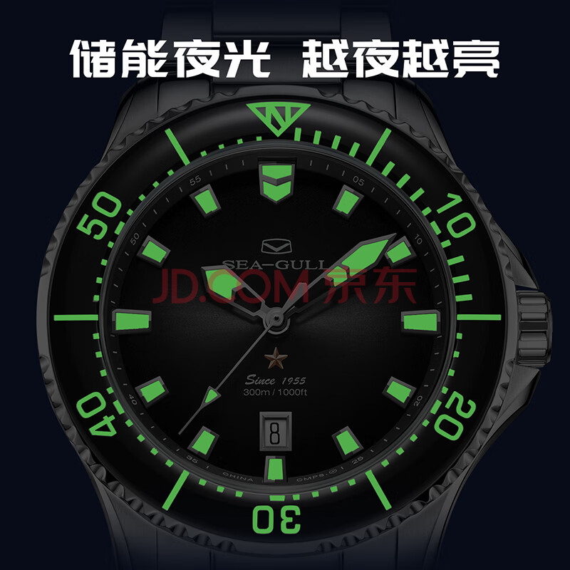 商品相册:海鸥(SEAGULL)手表男士自动机械表 海洋pro男士手表生日礼物潜水表1210(黑44mm)第