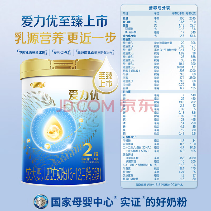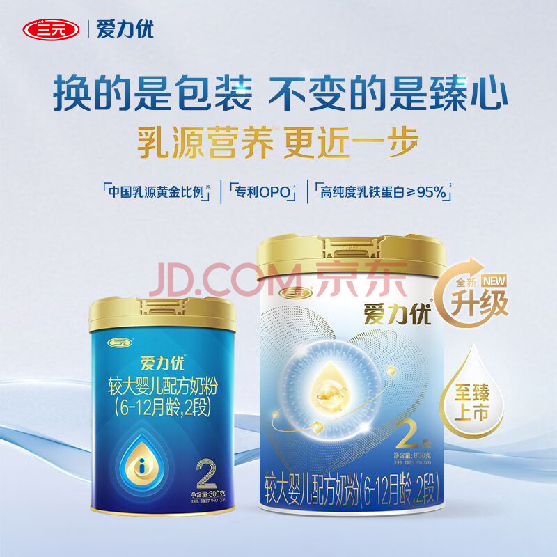 商品相册:三元 A2奶源 爱力优至臻较大婴儿配方奶粉2段(6-12个月)800g/罐第