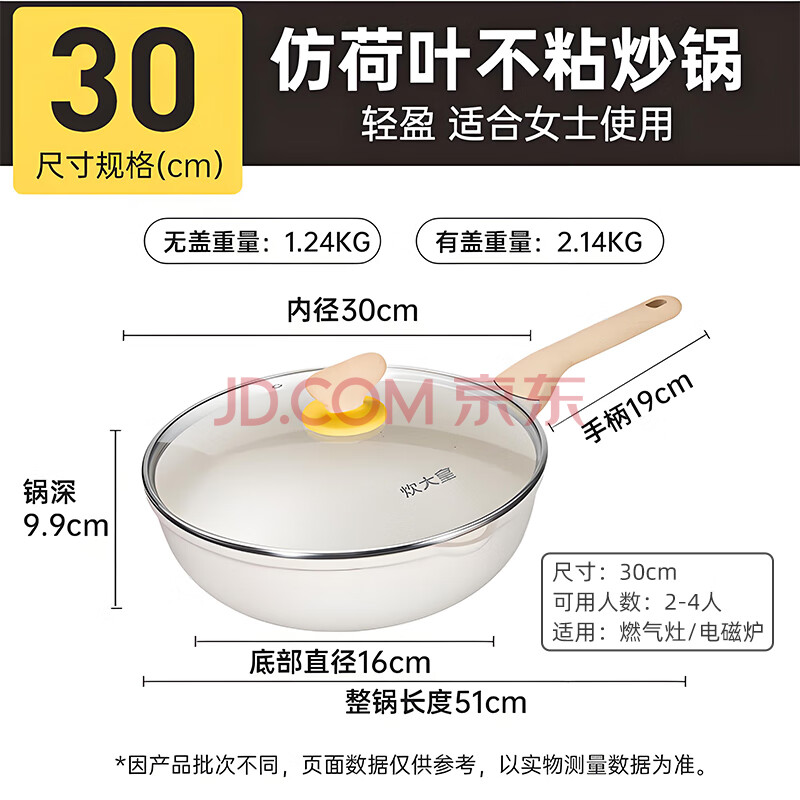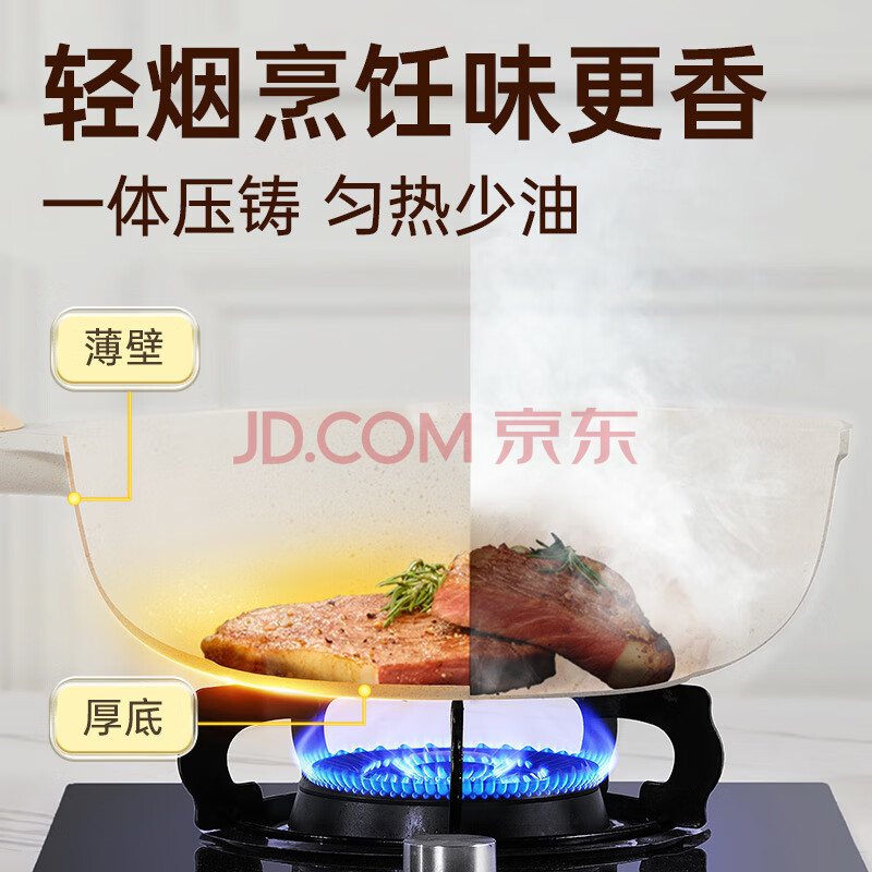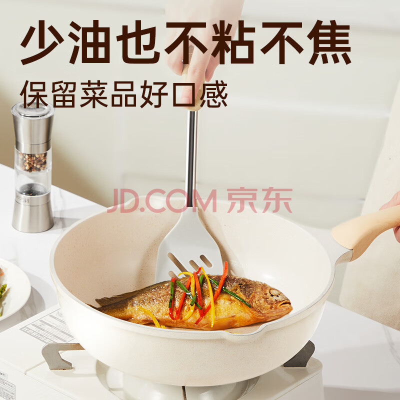 商品相册:炊大皇炒锅 麦饭石色聚油不粘锅多功能少油烟炒菜锅平底30cm 电磁炉通用第